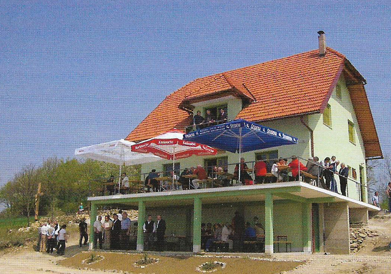 Uslijedilo je, nakon otkupa potrebnog zemljišta, niz akcija na izgradnji doma. Na dan završetka, prve planirane etape, vanjskih radova te prizemnog dijela, Društvo je obilježilo petu godinu djelovanja. Tom je prilikom upućena i zahvala Andriji Svečnjaku, tadašnjem predsjedniku Općinskog vijeća, te načelniku Željku Presečkom, koji su imali velikog razumijevanja i uvijek davali moralnu i materijalnu potporu realizaciji ovoga zahtjevnoga projekta.