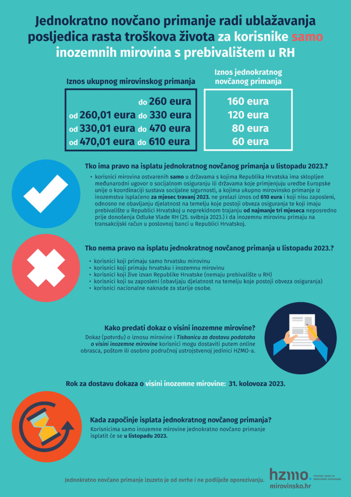 Jednokratno novčano primanje radi ublažavanja posljedica rasta troškova života za korisnike samo inozemnih mirovina s prebivalištem u RH
