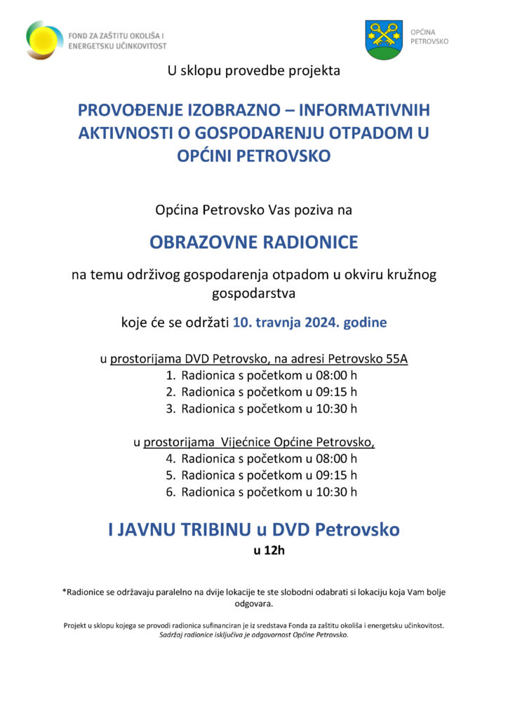 Poziv na radionice za lokalno stanovništvo 10. travnja 2024. godine